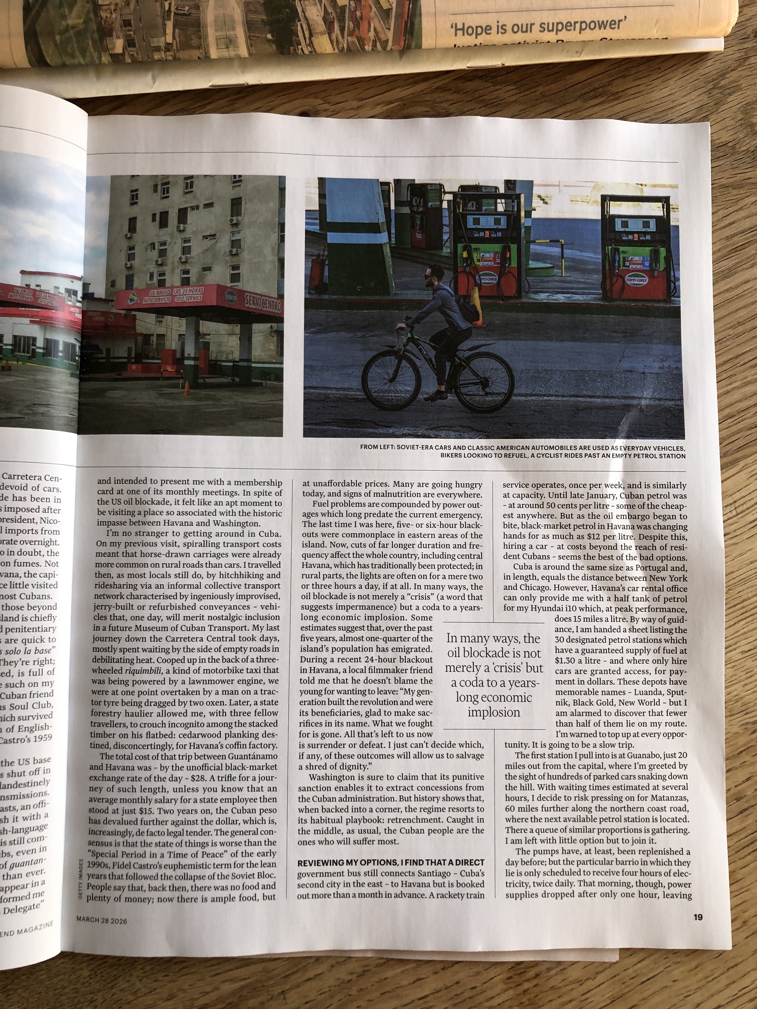 At a time of heightened tension and energy shortages in Cuba, James was revisiting places he writes about in the book (there are fantastic photographs on his Instagram) and writing a piece for the Financial Times magazine, which appeared this weekend.